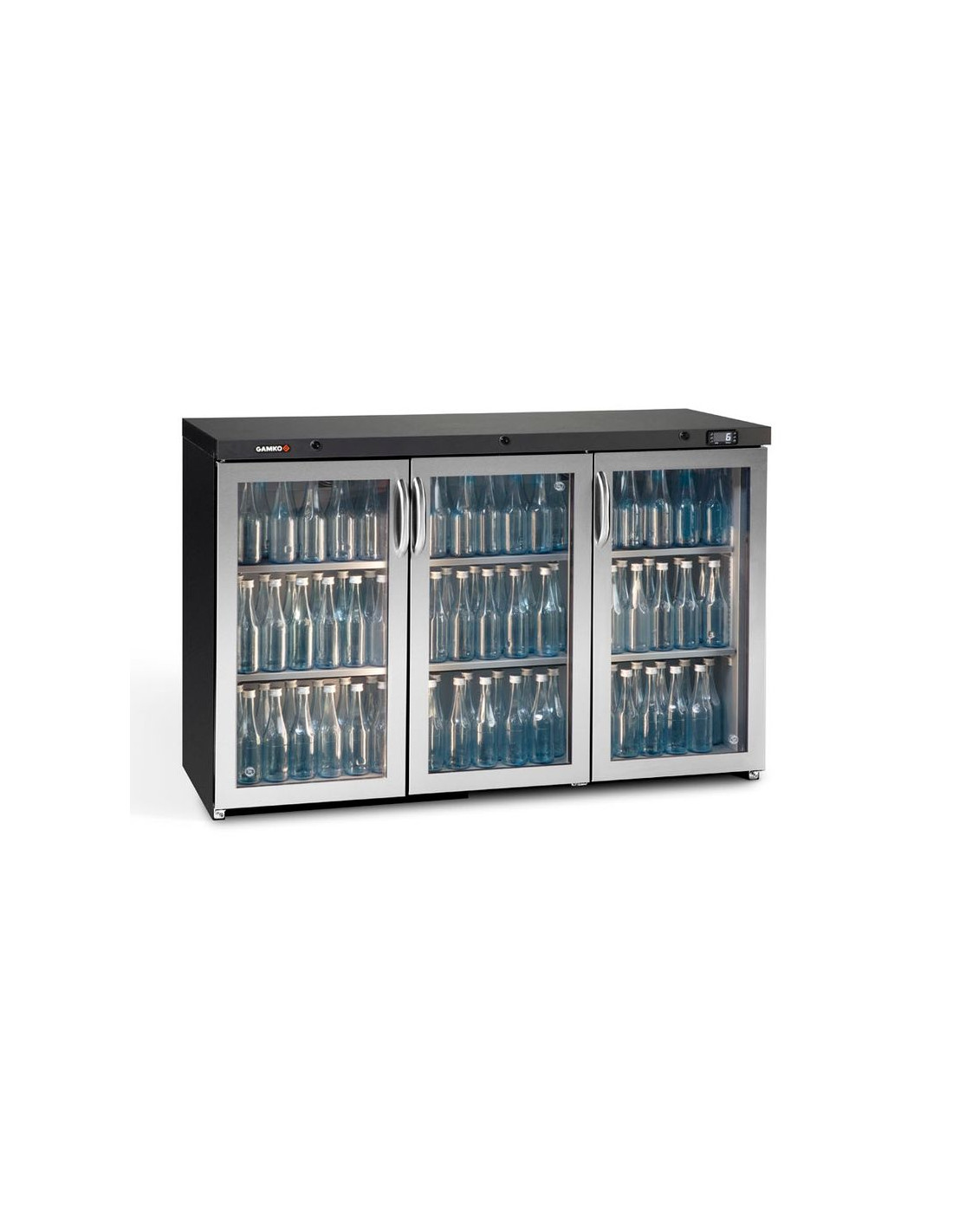 Arrière-bar Gamko 3 portes vitrées inox.