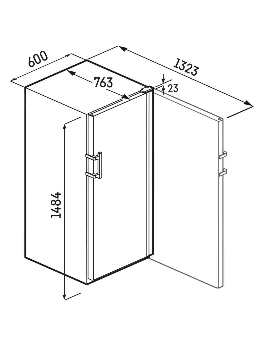 Easy Fill : la porte est maintenue ouverte à partir d'un angle de 90°, ce qui facilite le rangement des bouteilles.
