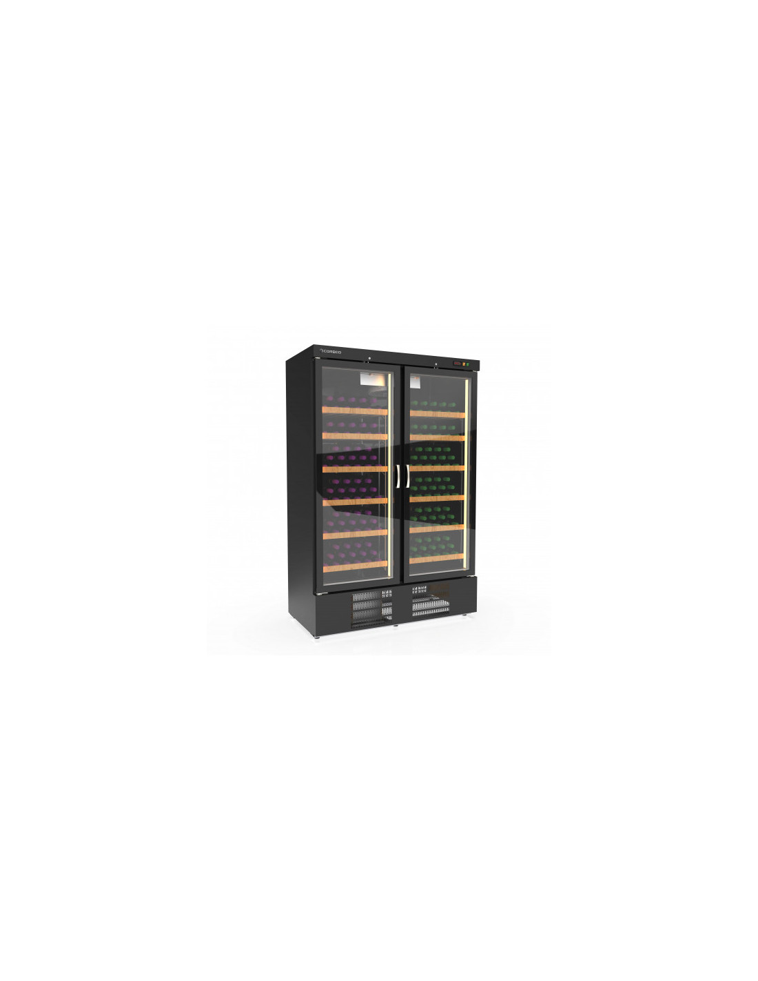 Cave à vin deux portes vitrée 2 zones de température.