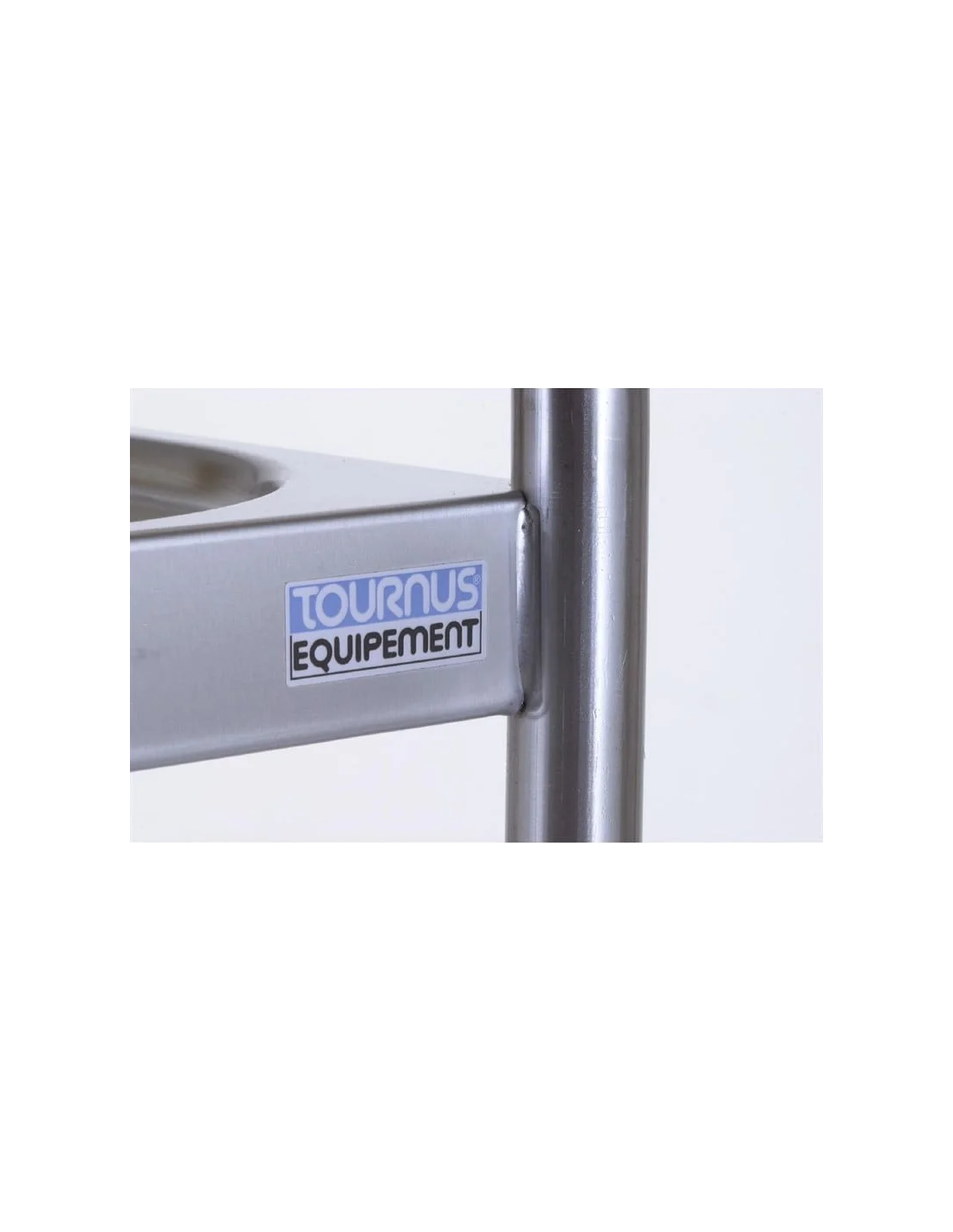 Plateau emboutis avec bords écrasés et galerie hauteur 50 mm en fil inox de diamètre 8 mm.
