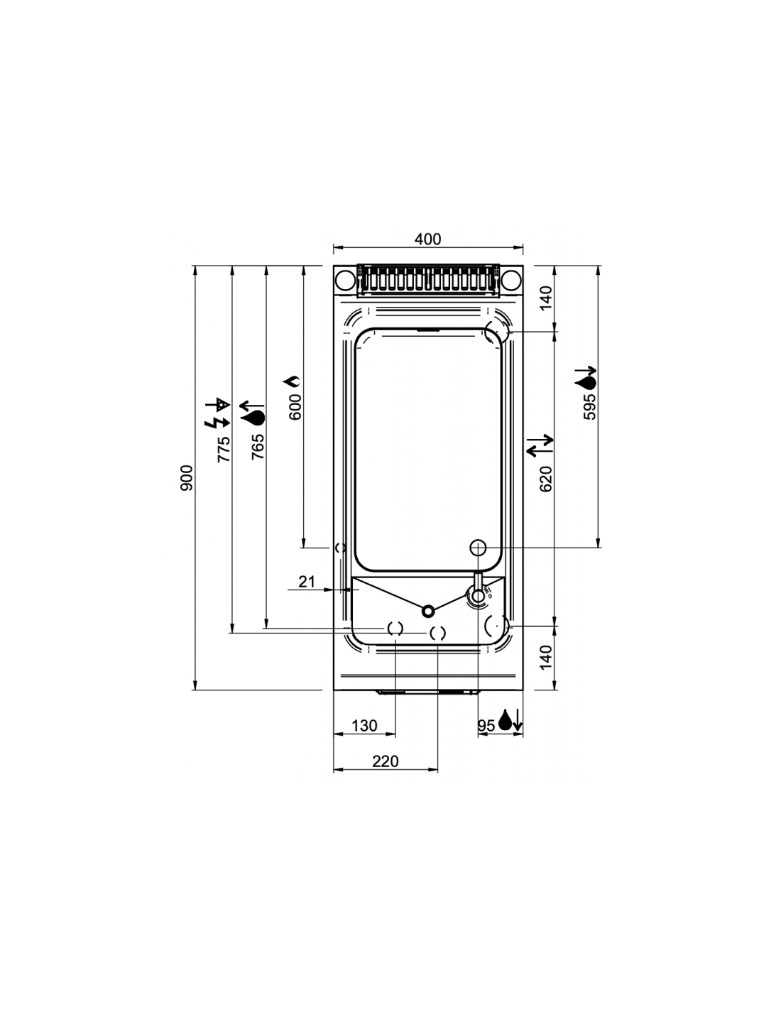 Vanne de vidange des eaux sous la cuve (dans le placard).