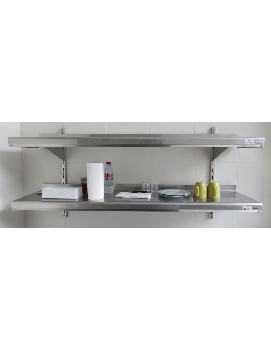 Etagère inox murale deux niveaux sur crémaillères TOURNUS EQUIPEMENT.