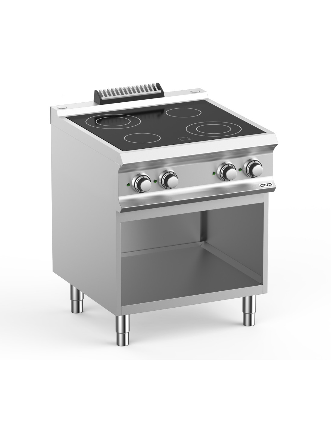 Fourneau 4 plaques vitrocéramique MBM sur placard ouvert.