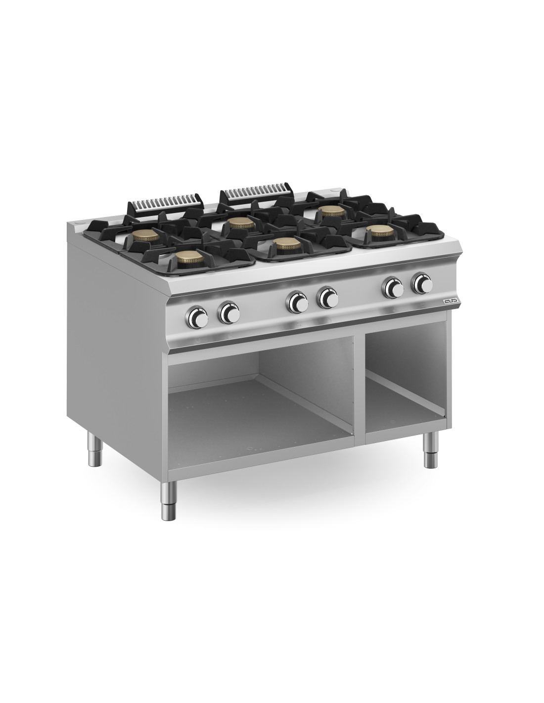 Fourneau 6 feux MBM gaz sur baie ouverte.