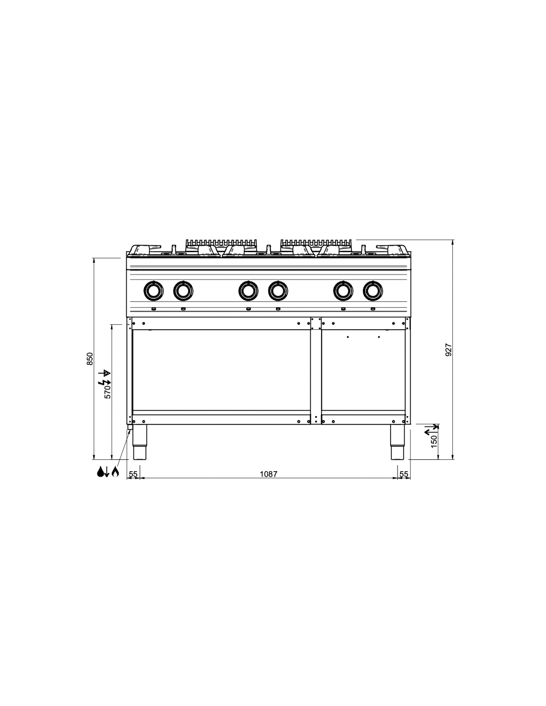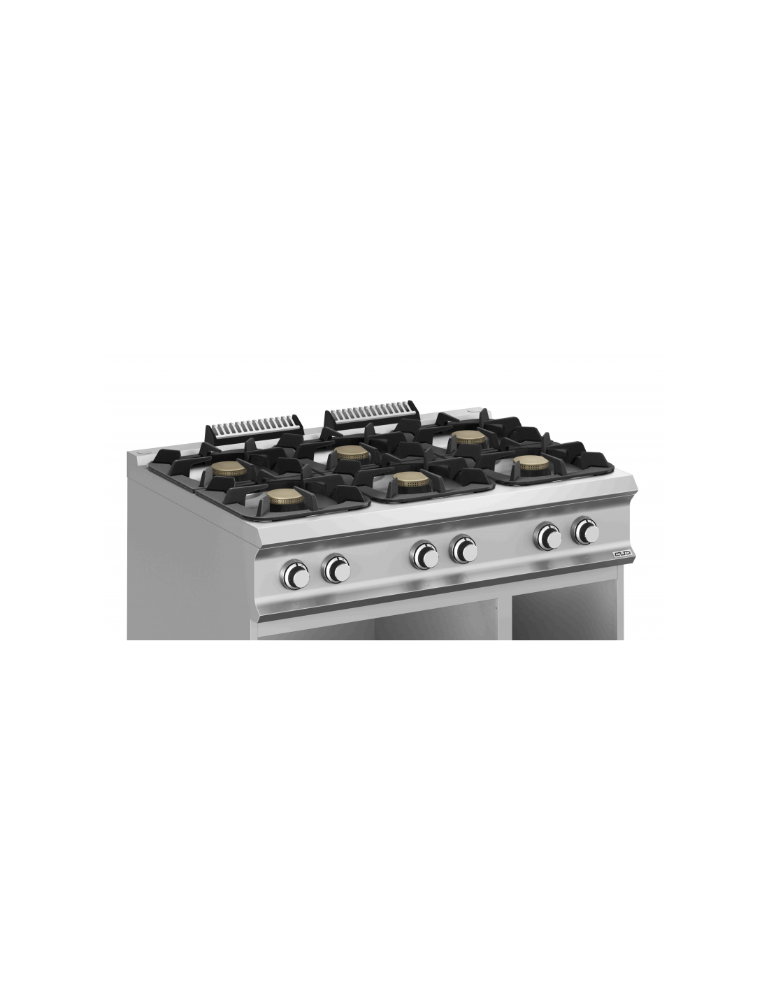 Les fourneaux 6 feux gaz sont fabriqués entièrement en acier inoxydable 20/10 ème à bords arrondis avec des chapeaux de brûleurs en fonte.