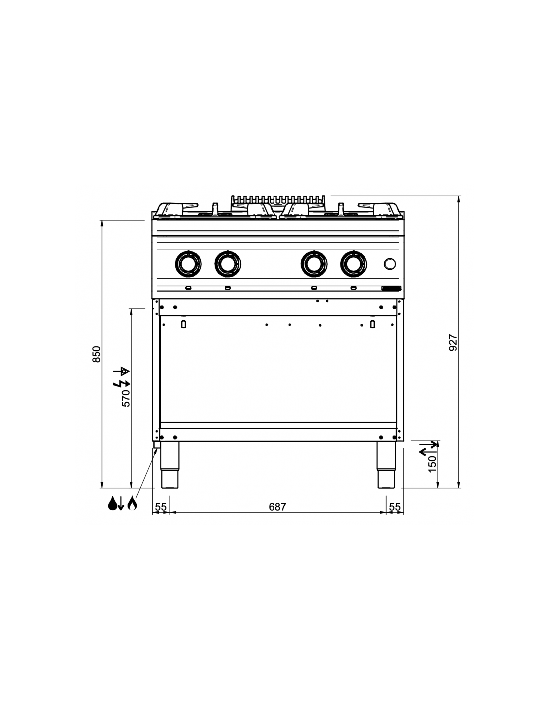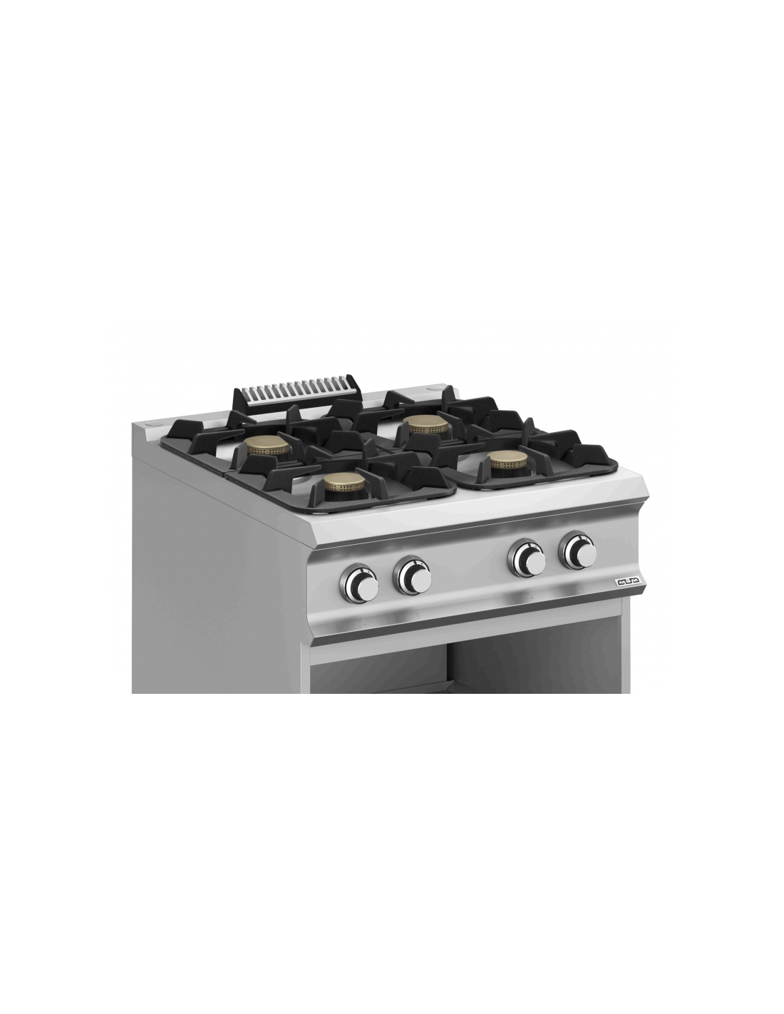 Les fourneaux 4 feux gaz sont fabriqués entièrement en acier inoxydable 20/10 ème à bords arrondis avec des chapeaux de brûleurs en fonte.