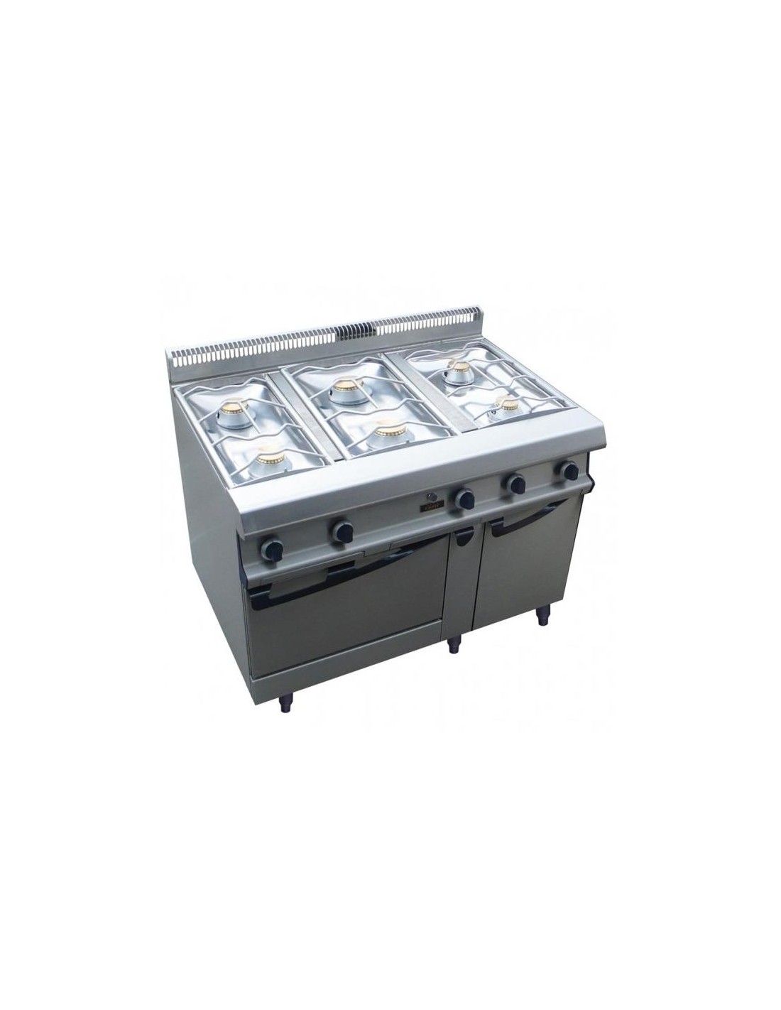 Fourneau CAPIC 6 feux gaz sur four gaz GN 2/1 et placard.