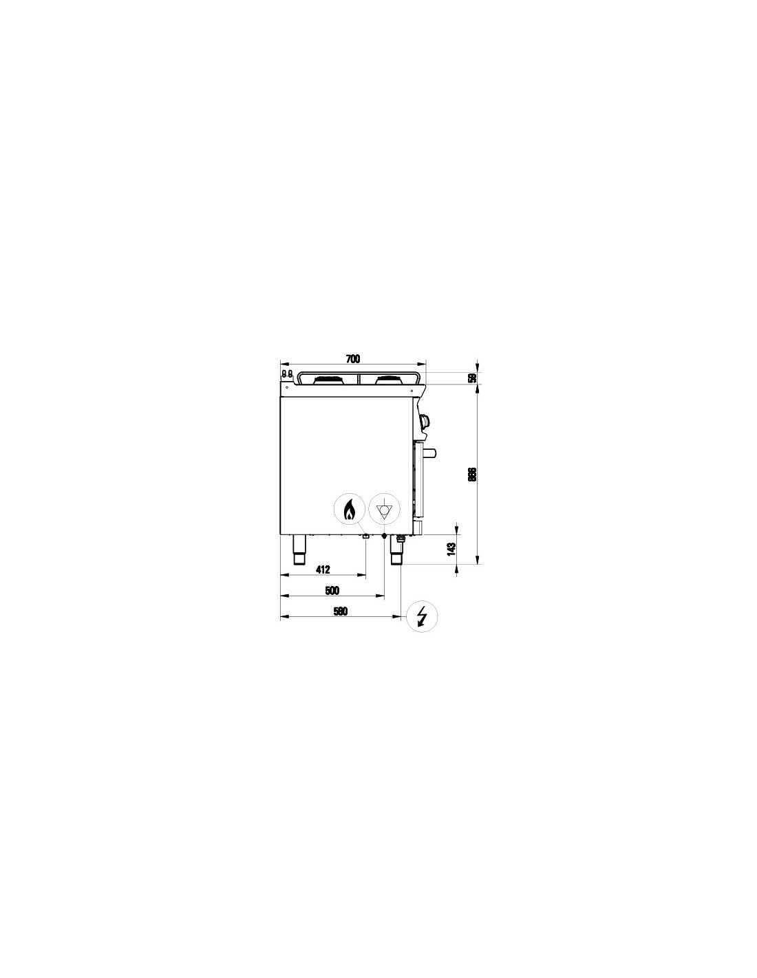 Fourneau 6 feux gaz sur four gaz et placard GN1/1.