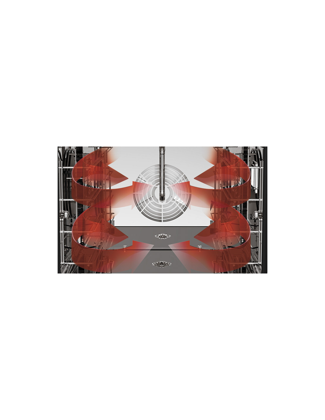 Chambre de cuisson avec angles arrondis, espacement de 75 mm entre chaque niveau.
