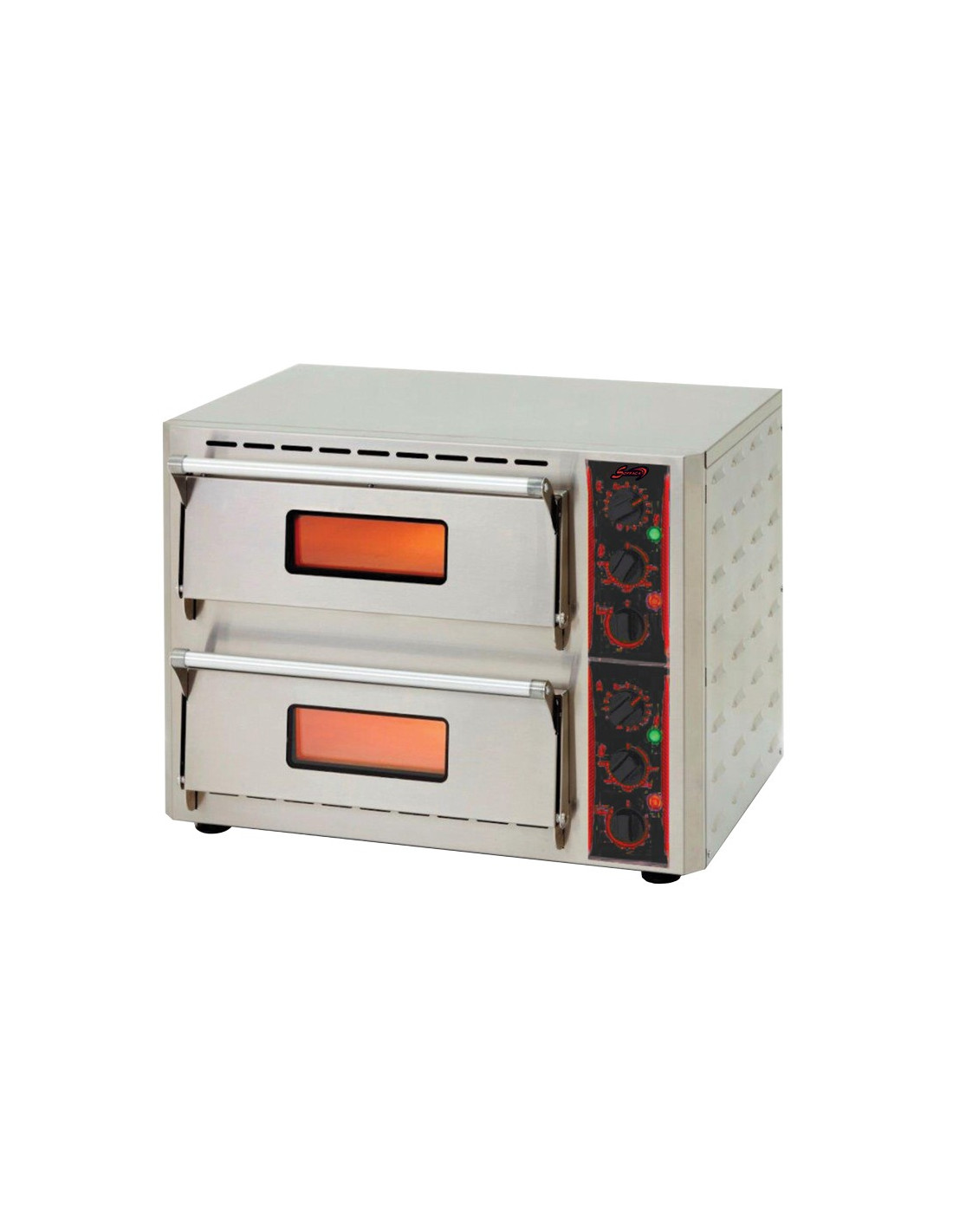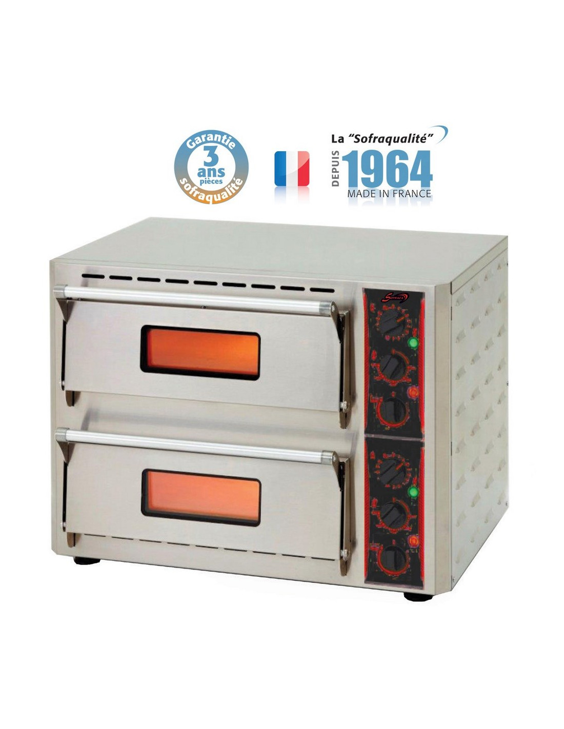 Four à pizzas deux chambres monobloc présentation en acier inox en façade.