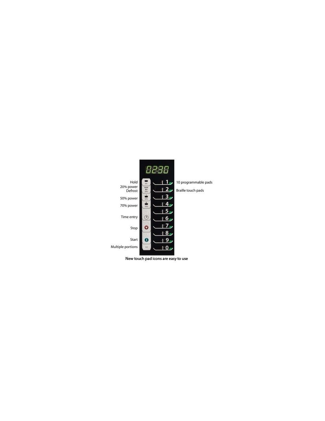 Touches braille et affichage LED.