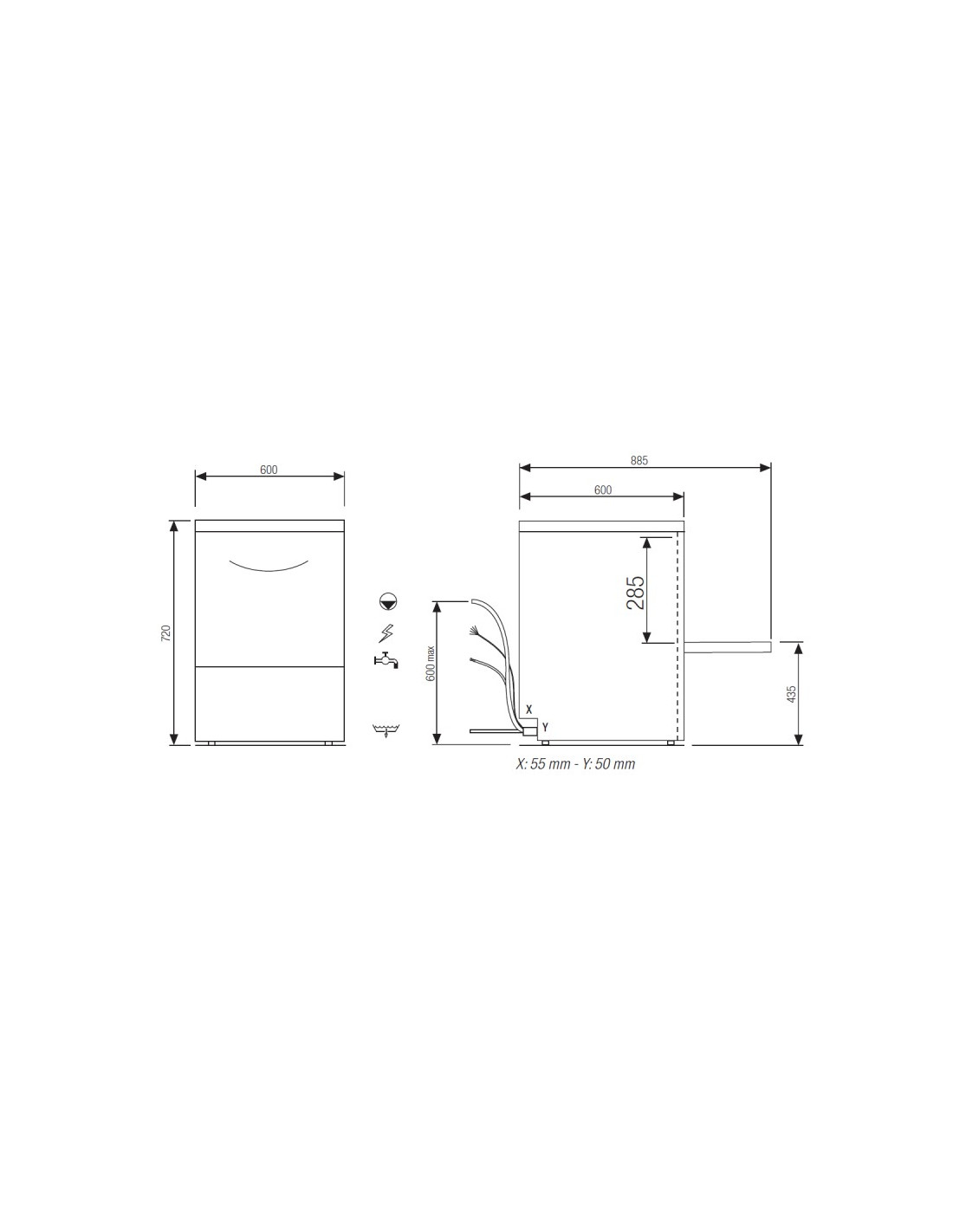 Lave-verres panier 50x50 cm avec adoucisseur, ELETTROBAR fabrication extérieur et intérieur en acier inoxydable AISI304.