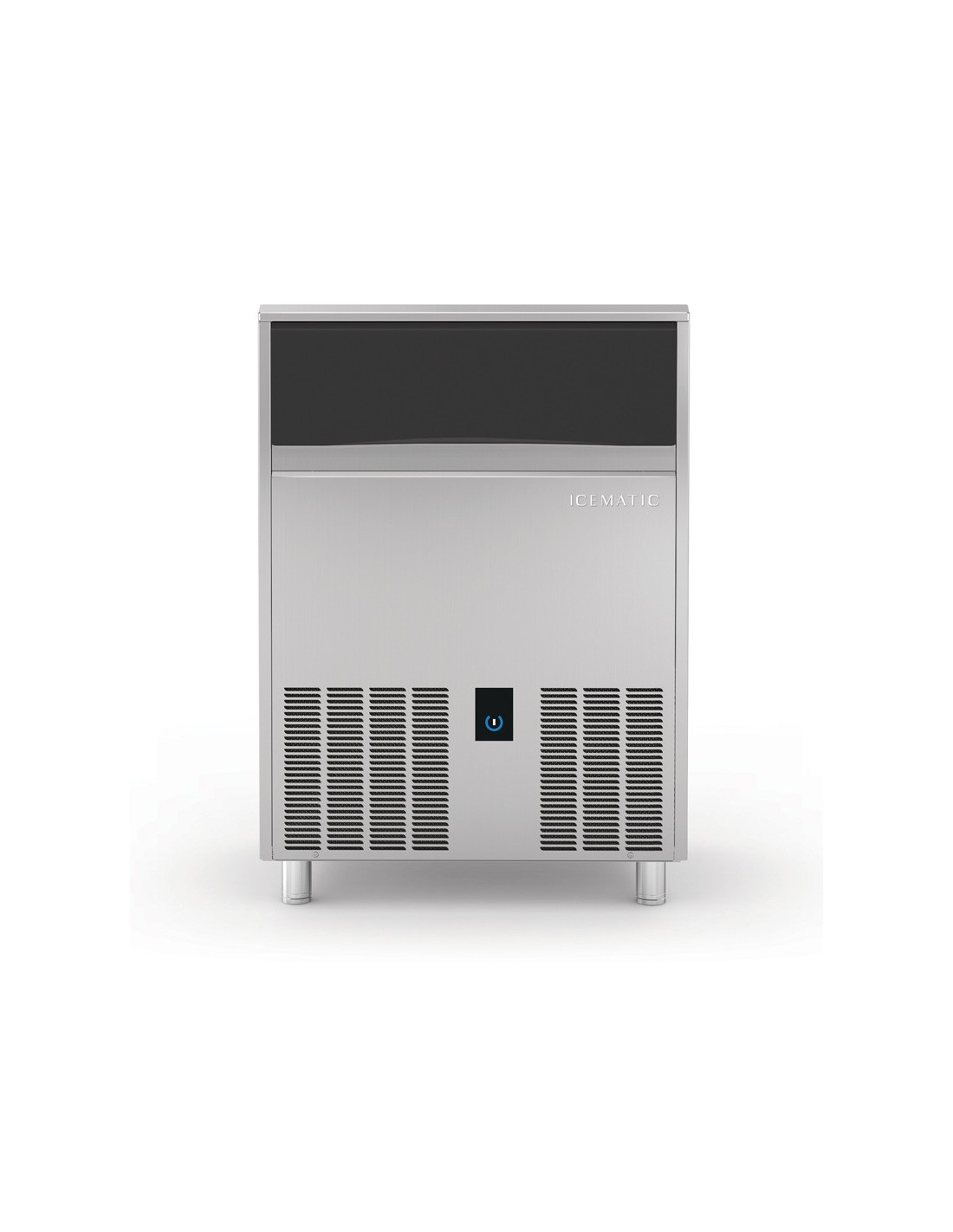 Machine à glaçons pleins ICEMATIC avec une production de 86Kg/24h et une réserve d'une capacité de 42 Kg / 56 glaçons par cycle.