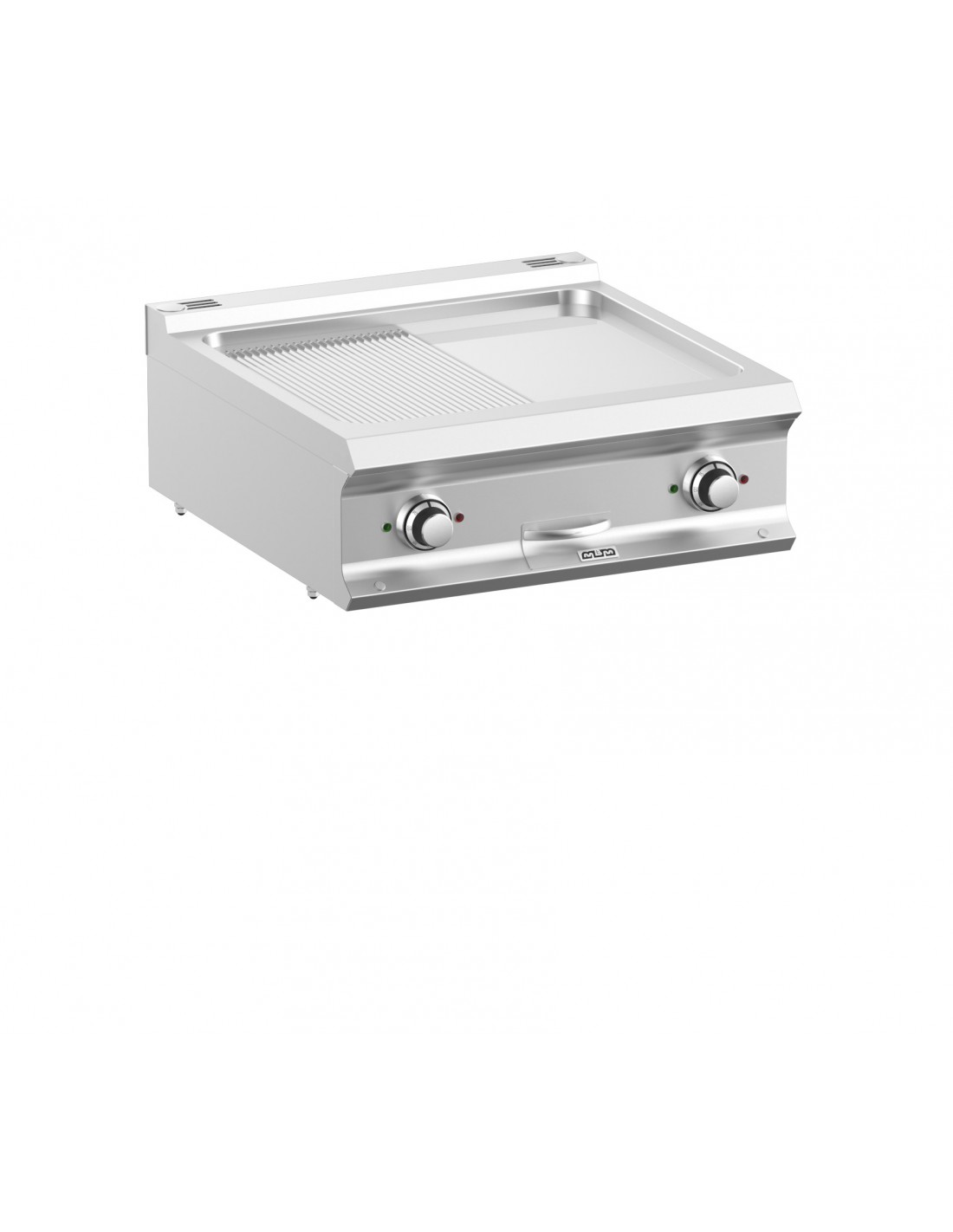 Plancha électrique MBM plaque en chrome 1/2 lisse et 1/2 rainurée.