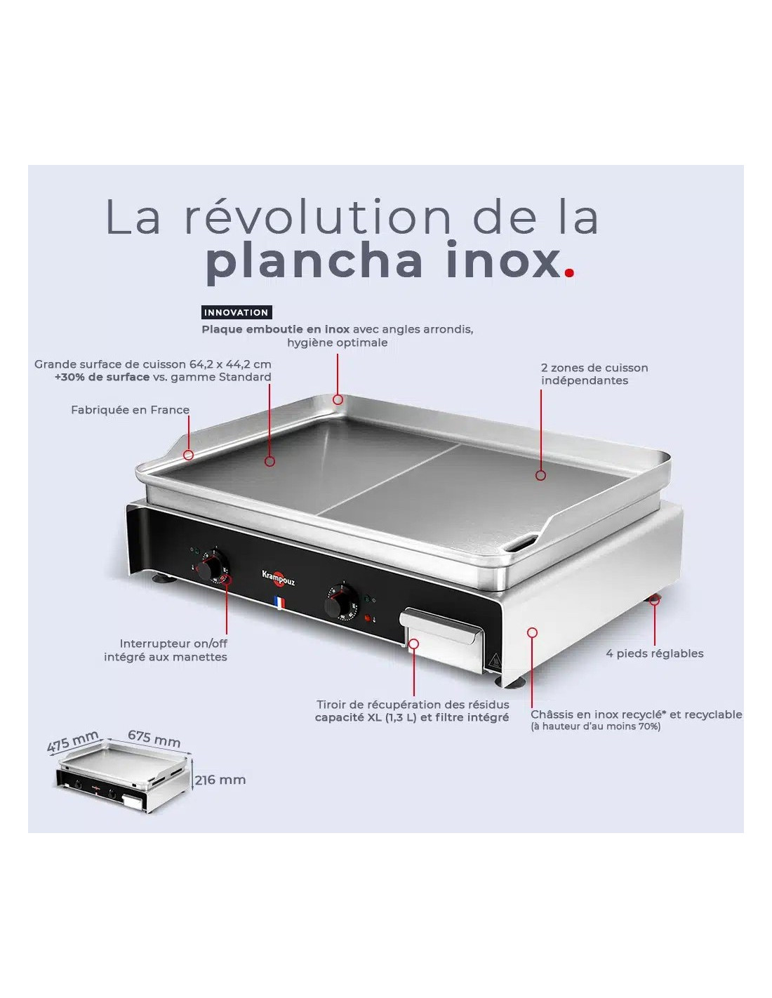 Plaque à snacker krampouz électrique, plaque emboutie en inox avec angles arrondis.
