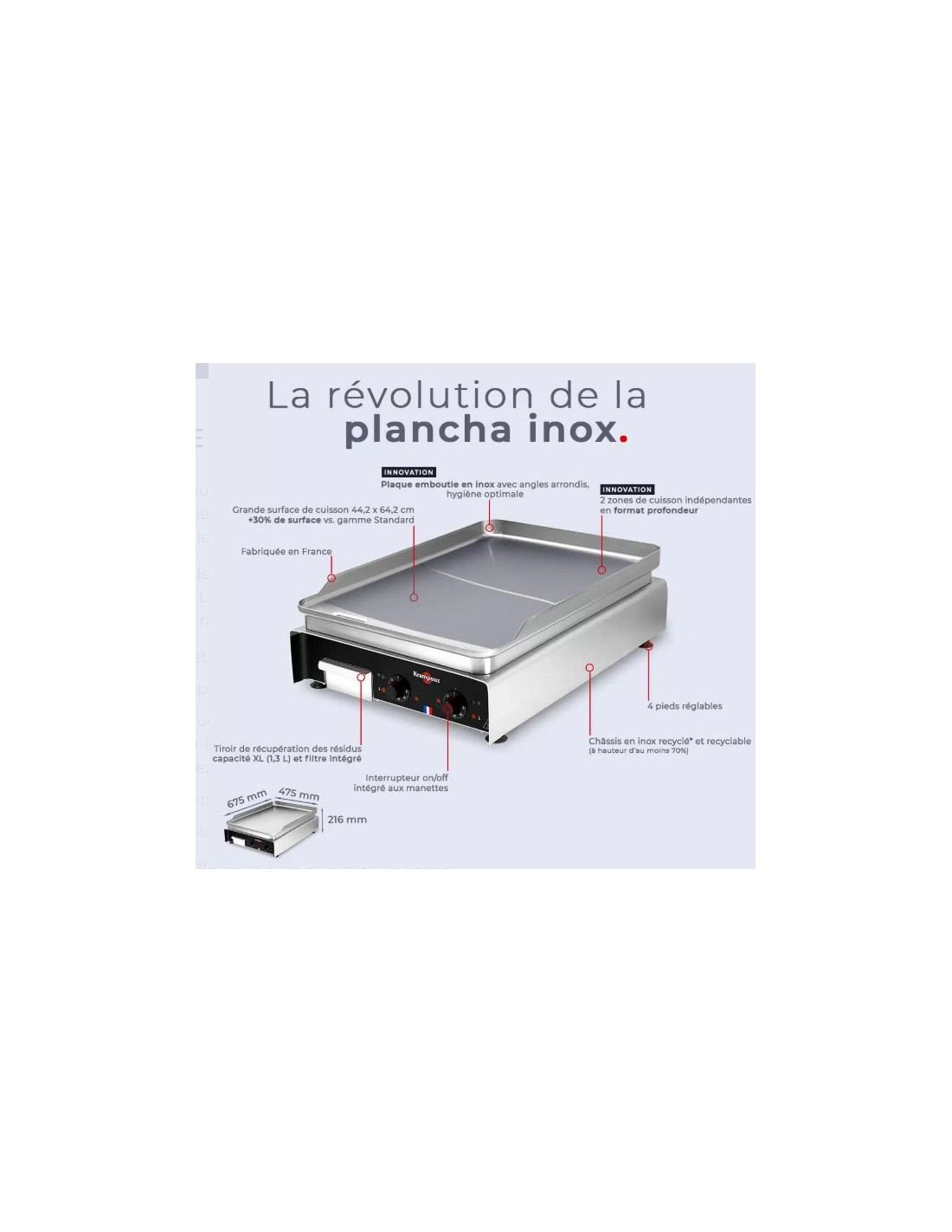 Plaque à snacker krampouz électrique, plaque emboutie en inox avec angles arrondis.