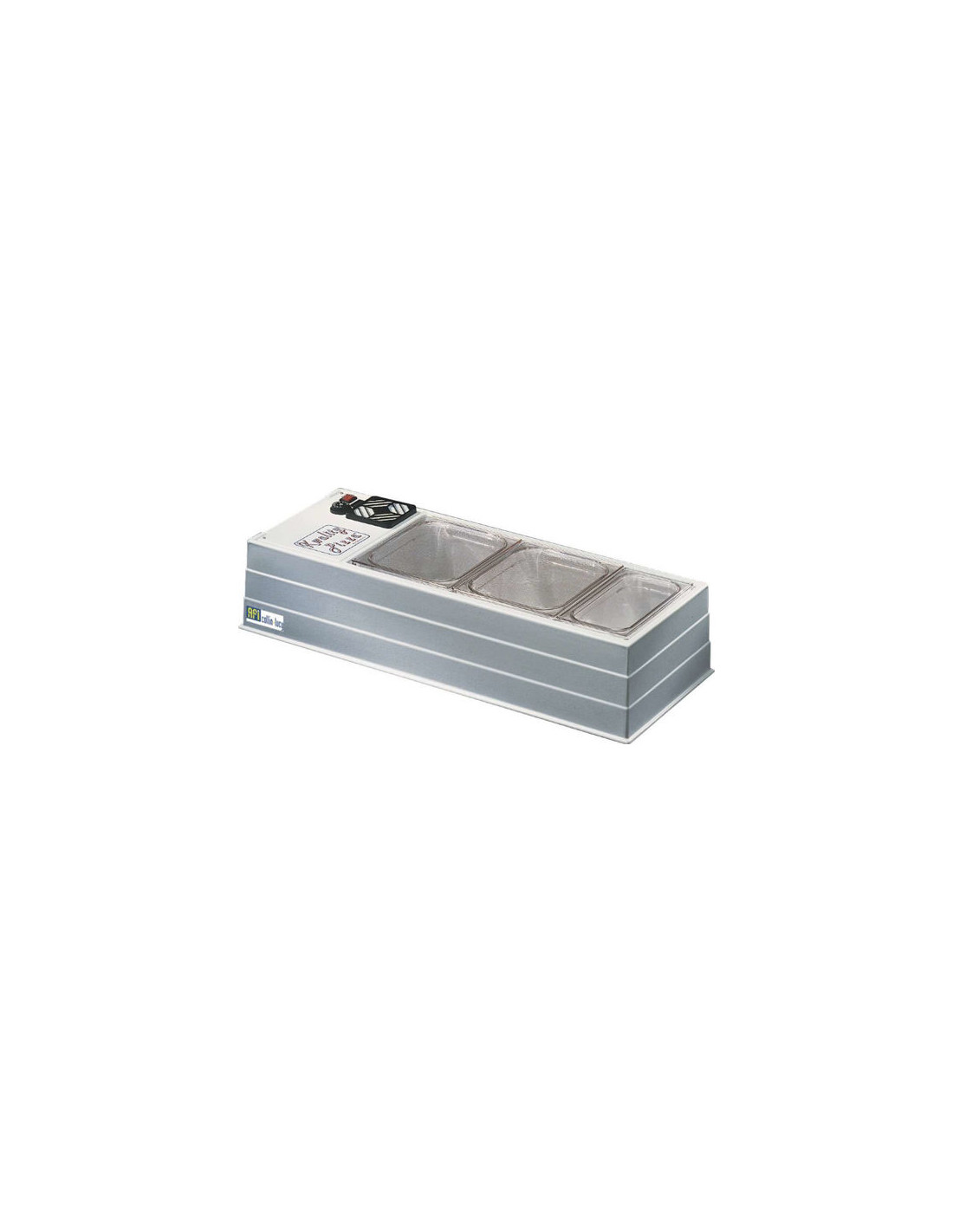 Vitrine de présentation pour recevoir des bacs gastronomes en profondeur 150 mm (bacs non fournis).