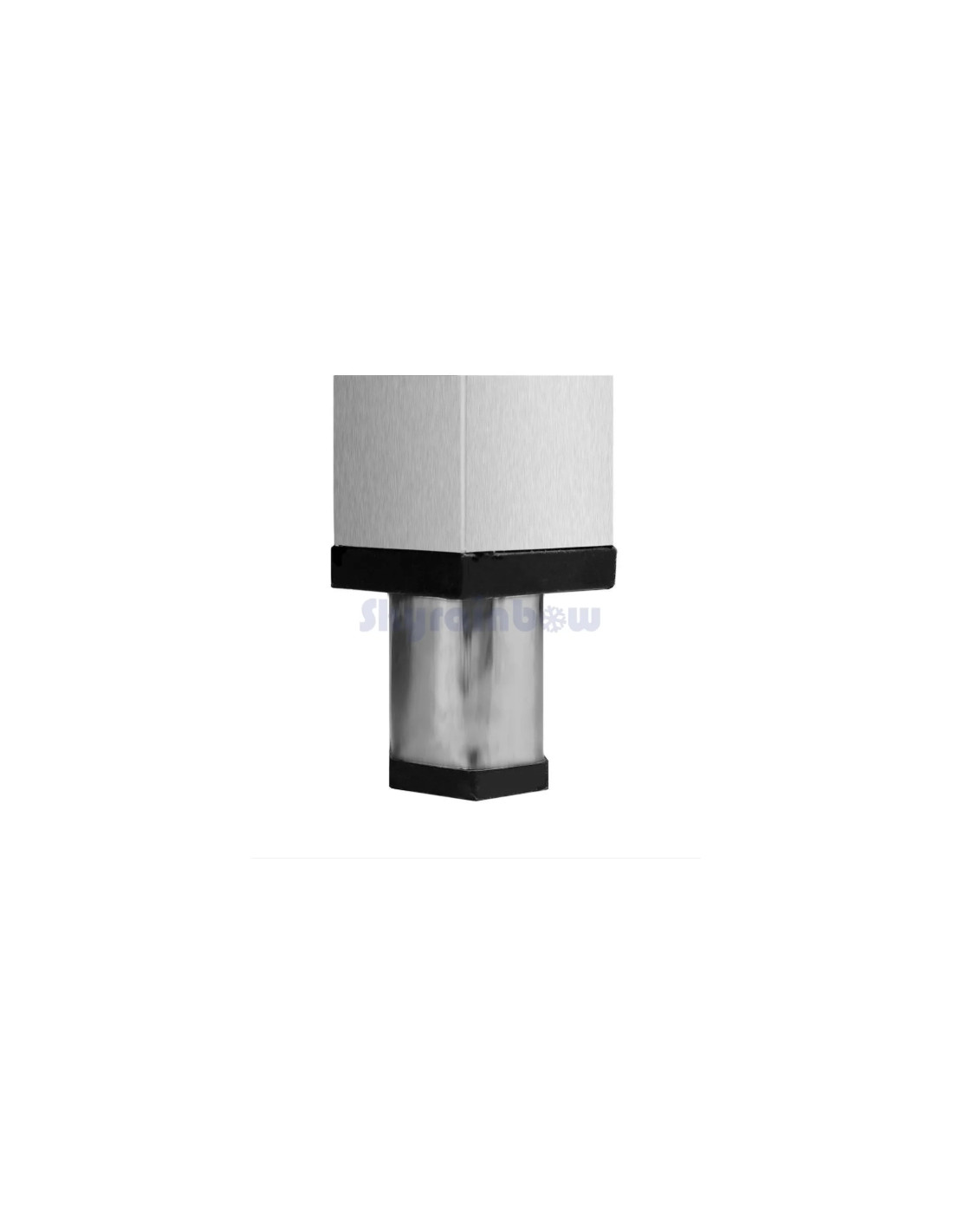 Piétement inox en tube carré de 38x38 mm sur vérins réglables.