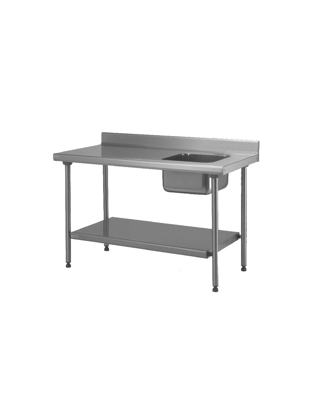 Table inox du chef TOURNUS EQUIPEMENT un bac 400x400x250 mm à droite et une étagère basse.