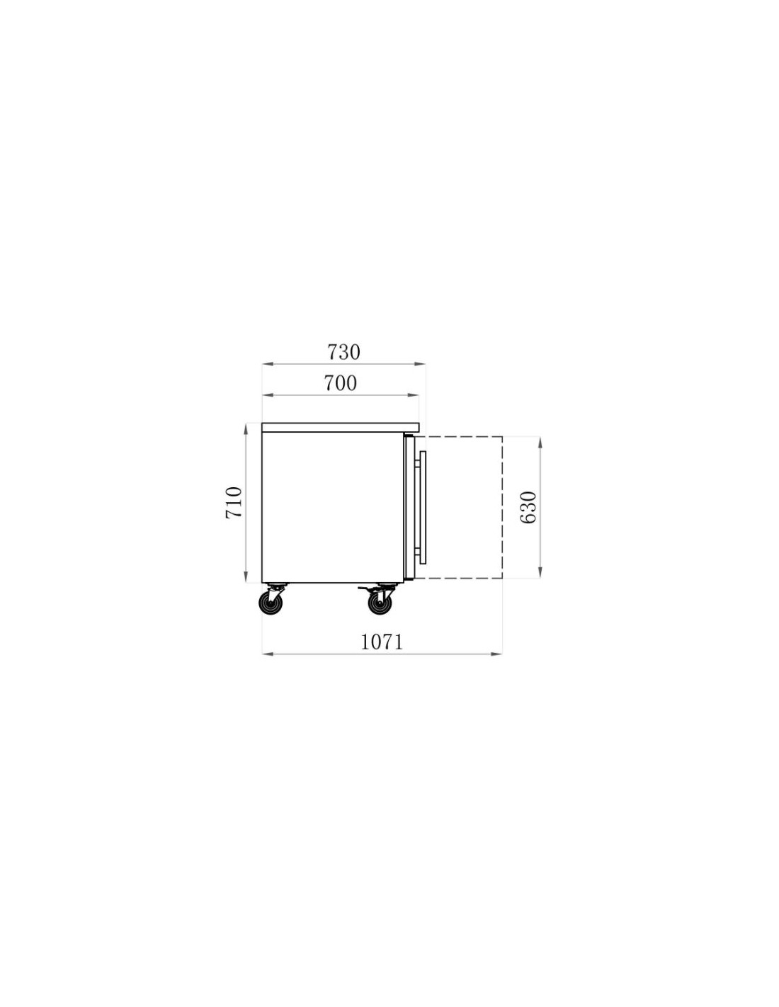 Desserte réfrigérée positive centrale 4 portes vitrée GN 1/1 profondeur 700 mm.
