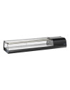 Vitre bombée en verre trempé relevable et carrosserie extérieur noire en aluminium.